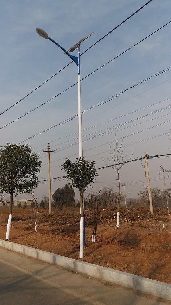 太陽能路燈是采用晶體硅太陽能電池供電,免維護閥控式密封蓄電池(膠體電池)儲存電能,超高亮LED燈具作為光源,并由智能化充放電控制器控制,用于代替傳統公用電力照明的路燈。無需鋪設線纜、無需交流供電、不產生電費;采用直流供電、控制;具有穩定性好、壽命長、發光率高,安裝維護簡便、安全性能高、節能環保、經濟實用等優點。可廣泛應用于城市主、次干道、小區、工廠、旅游景點、停車場等場所。產品部件燈桿結構:鋼質燈桿及支架,表面噴塑處理,電池板連接采用用防盜不銹鋼螺絲。